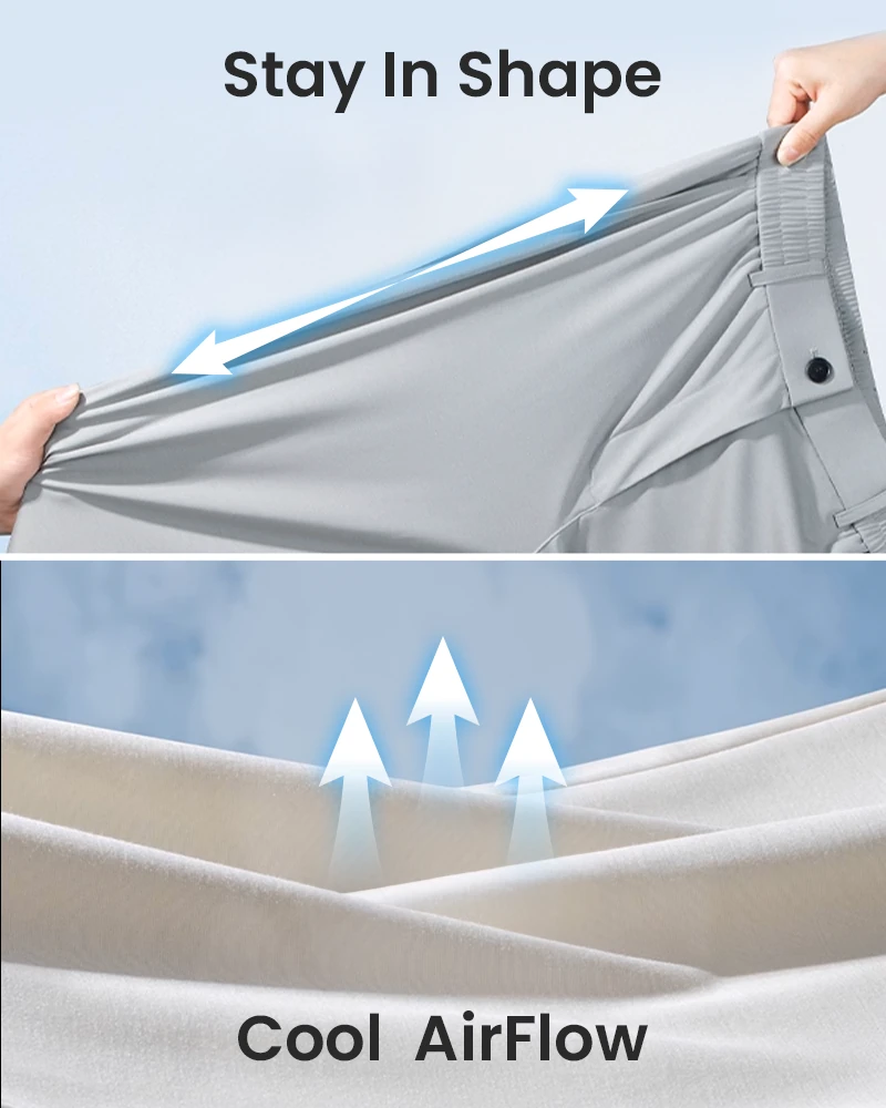 With advanced CoolMax® ice silk fabric, these pants deliver full-leg coverage without the heat — combining breathable structure with a luxuriously soft, cool-touch feel. Moisture dries quickly, airflow stays high, and you stay fresh, dry, and comfortable from morning to night.